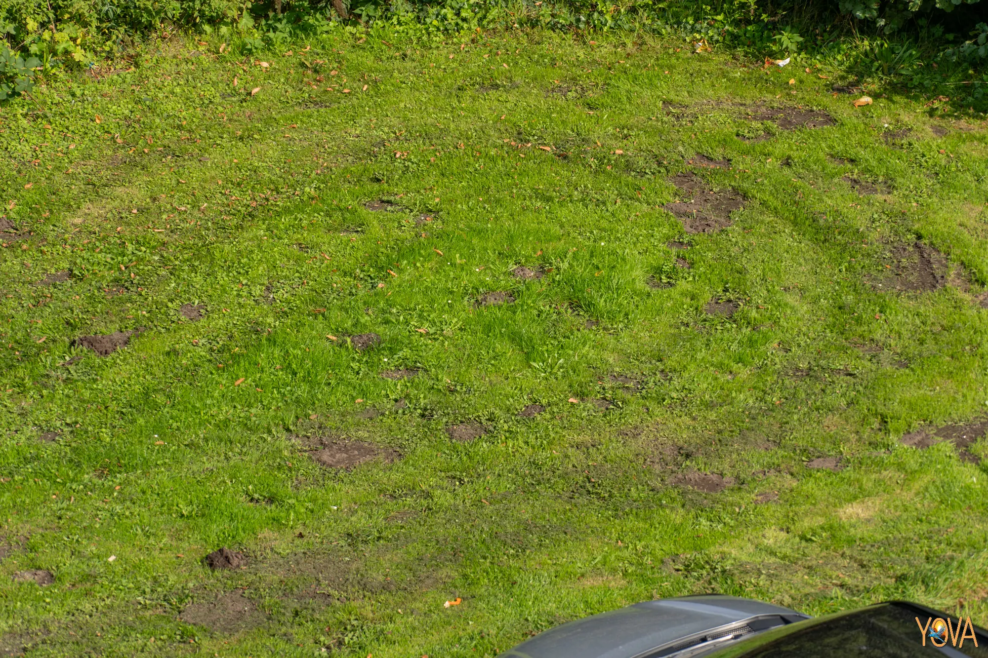 Eerder werd dit gras veldje gemaaid door de Gemeente Haarlem wellicht. Nou dit was geen maaien geweest, het is meer vernielen. Nee, er waren toen geen molshopen te zien. Die komen nog! Deze maaier moet gewoon terug naar de school.